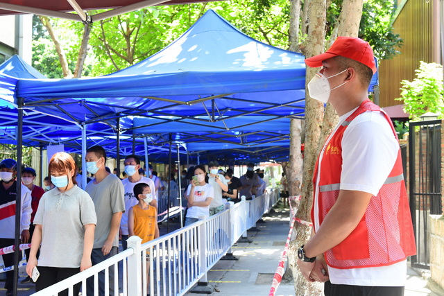 ▲象嶼志愿者在興華社區(qū)核酸檢測點