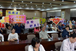 現(xiàn)場(chǎng)觀眾為競(jìng)選者投票、助威