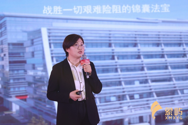 ▲象嶼金象融資租賃事業(yè)部副總監(jiān)邵華帶來《創(chuàng)新發(fā)展 揚(yáng)帆遠(yuǎn)航》的宣講