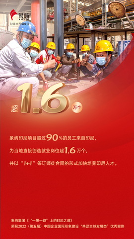 作為國家發(fā)改委“一帶一路”重點(diǎn)項(xiàng)目,象嶼印尼項(xiàng)目積極落實(shí)全球發(fā)展倡議,踐行ESG理念,發(fā)揮象嶼集團(tuán)在供應(yīng)鏈、物流等領(lǐng)域優(yōu)勢,開展國際產(chǎn)能合作,既有力保障了中國市場對不銹鋼的巨大需求,提升了不銹鋼產(chǎn)業(yè)鏈的全球競爭力,也對印尼的產(chǎn)業(yè)發(fā)展、人民就業(yè)、基礎(chǔ)設(shè)施改善等發(fā)揮重要作用。