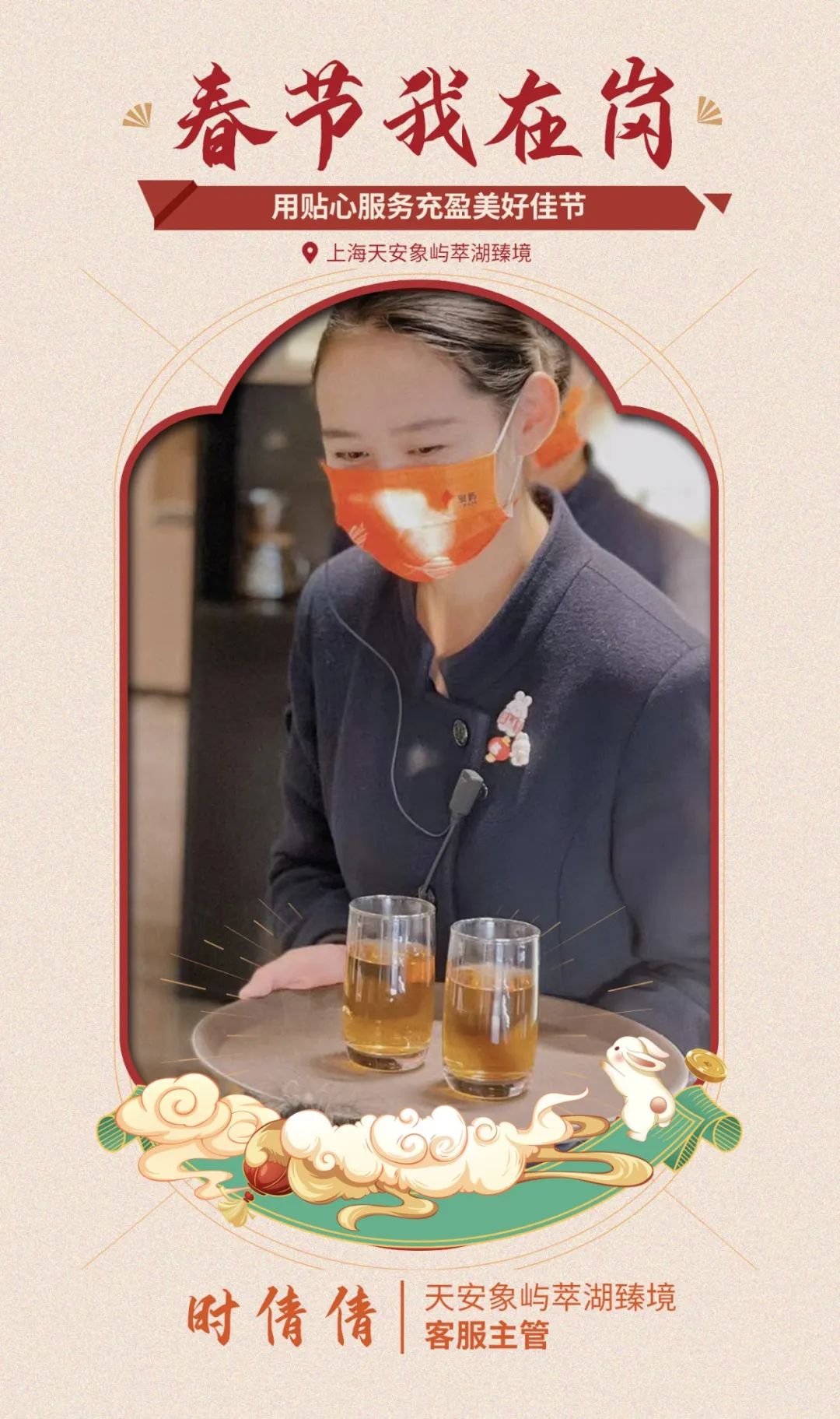 春節(jié)期間,天安象嶼萃湖臻境售樓處正常營(yíng)業(yè)不打烊。由于節(jié)日期間客服人員緊缺,時(shí)倩倩主動(dòng)請(qǐng)纓,保持在崗、帶教新人,和同事們一起,用來自象嶼的幸福生活細(xì)節(jié)充盈新年。