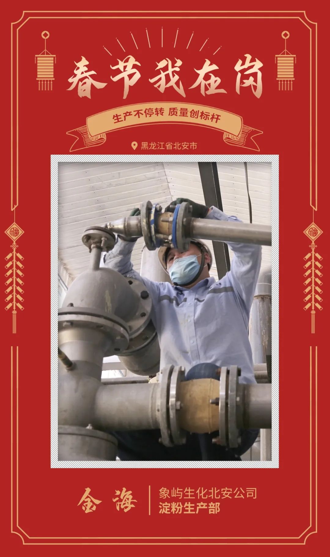 作為第一批加入北安公司的員工,今年是金海在崗位上過的第7個(gè)春節(jié)。加入公司以來,每一年他都在崗位上和同事們一起度過春節(jié),保障磨區(qū)機(jī)器正常運(yùn)行,創(chuàng)建產(chǎn)品質(zhì)量標(biāo)桿。