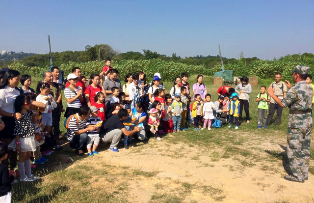 雖已是秋日,東坪山青蔥、秀麗依舊。天朗氣清,讓人心情舒暢。當(dāng)天,來(lái)自集團(tuán)不同公司的25組家庭帶著27個(gè)萌娃,總數(shù)達(dá)80余人走進(jìn)東坪山高炮三連,開(kāi)啟一次最特別的秋游。