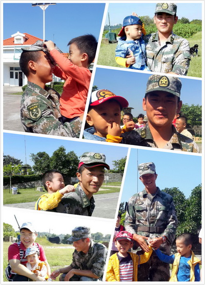 在這次參加活動(dòng)的27個(gè)萌娃中,最大的有十歲,最小才一歲兩周。當(dāng)問(wèn)及為何要獨(dú)自一人帶著笑笑參加活動(dòng)時(shí),集團(tuán)公司肖智磊笑著說(shuō)到:“平時(shí)工作忙,帶孩子時(shí)間不多。這次給孩子她媽也放個(gè)假?!庇行┦勘粗c自己孩子年齡相仿的寶貝們,流露出父愛(ài)情長(zhǎng)。速傳王林煌不僅帶上妻子、孩子,也叫上了岳父岳母,一家五口羨煞旁人。合照時(shí),他們還邀請(qǐng)士兵們一起,傳遞出“家”的溫暖。父母和孩子以藍(lán)天為友,綠草為伴,身著親子裝,拍著家庭照,便是最自在和真切的幸福。