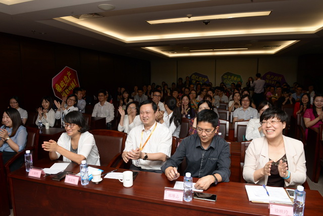 廈門衛(wèi)視總監(jiān)徐映玲、廈門廣電集團首席主持人邢雄志、集團黨委副書記、工會主席邵蕰默等三位專業(yè)評委,集團各行業(yè)、單體公司的11位員工評委和到場所有員工不由為精彩視頻鼓掌