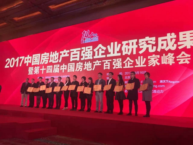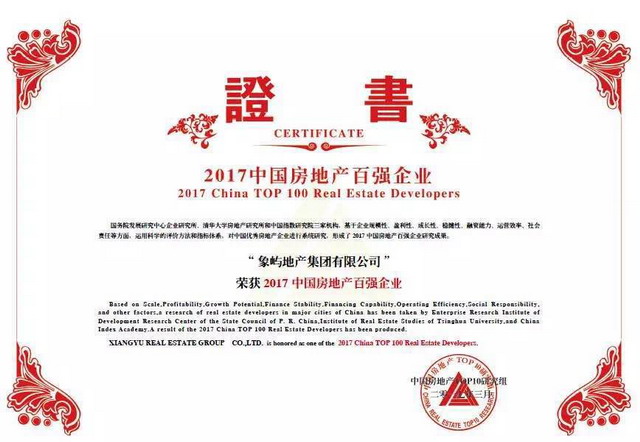 象嶼地產(chǎn)榮獲“2017中國房地產(chǎn)百強企業(yè)”