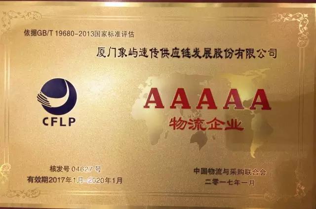 象嶼速傳榮膺國(guó)家5A級(jí)綜合服務(wù)型物流企業(yè)