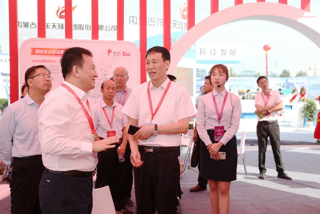 開(kāi)幕式結(jié)束后,陜西省人大常委會(huì)副主任、榆林市委書(shū)記、市人大常委會(huì)主任、黨組書(shū)記戴征社,榆林市委副書(shū)記、榆林市人民政府市長(zhǎng)李春臨等市領(lǐng)導(dǎo)率重要參會(huì)嘉賓們蒞臨象嶼集團(tuán)展位,象嶼集團(tuán)黨委副書(shū)記、總裁陳方,象嶼股份黨委委員、副總經(jīng)理程益亮,象嶼股份副總經(jīng)理張軍田,象道物流董事長(zhǎng)溫兆仁等熱情接待。領(lǐng)導(dǎo)們駐足象嶼展位,饒有興趣地聽(tīng)解說(shuō)員講解象嶼國(guó)際多式聯(lián)運(yùn)服務(wù)平臺(tái)及能源化工產(chǎn)業(yè)鏈服務(wù)平臺(tái),象嶼的發(fā)展模式得到榆林市領(lǐng)導(dǎo)及嘉賓們的高度認(rèn)可。