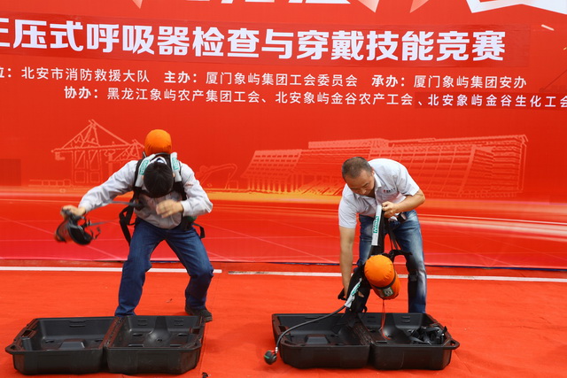 同日,正壓式呼吸器檢查與穿戴技能競(jìng)賽在北安象嶼產(chǎn)業(yè)園舉行,來自南通、綏化、富錦、北安等地公司的17名選手依次登臺(tái)比拼技藝。