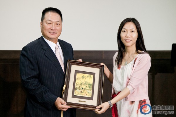 東森總裁王令麟(左)致贈(zèng)郎世寧畫(huà)作「八峻圖」給來(lái)訪的廈門市商務(wù)局副局長(zhǎng)鄭耀。(圖/ETtoday)