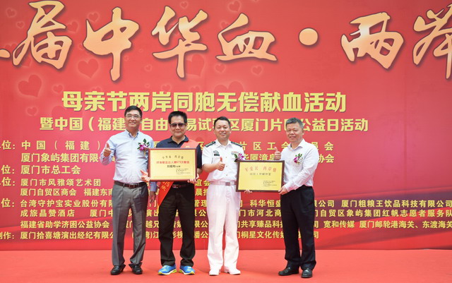 主辦方為兩岸同胞無償獻血公益做出貢獻的組織和個人頒獎。