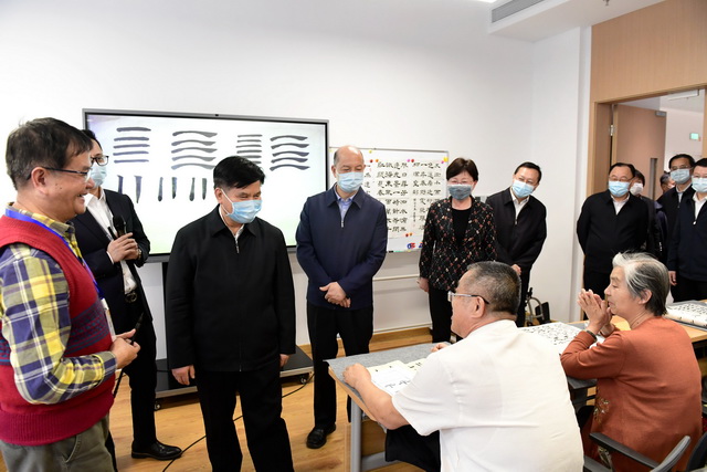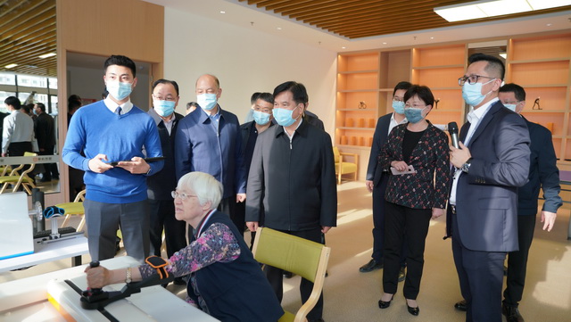 在聽取項目介紹后,調(diào)研組一行參觀了休閑文化配套空間、護理樓、養(yǎng)老公寓等區(qū)域,對象嶼慈愛的長者入住進展、醫(yī)養(yǎng)結(jié)合、慈愛學院課程開設、疫情防控等整體情況及運營成果進行深入了解,重點關(guān)注了包括“智慧一卡通”、全院可視化管理系統(tǒng)、智能餐盤等在內(nèi)的智慧化養(yǎng)老服務體系,并給予充分肯定。