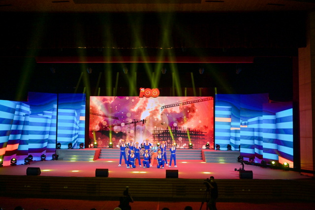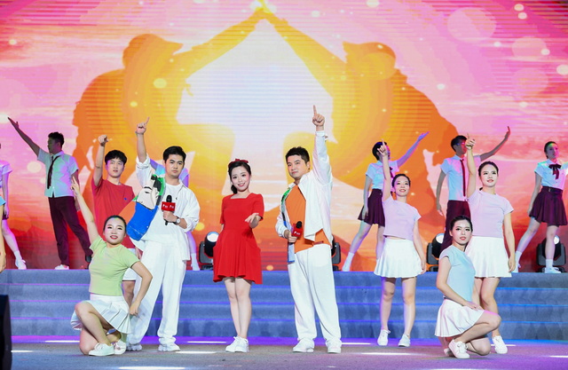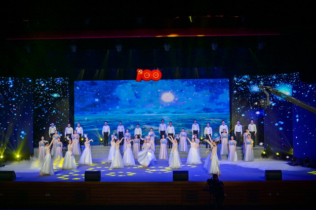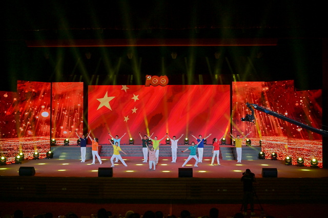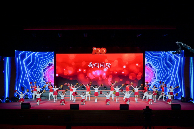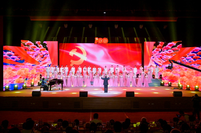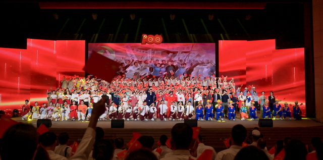 “迎風(fēng)飄揚(yáng)的旗,我們舉著你,舉起你就是舉起我們自己。迎風(fēng)飄揚(yáng)的旗,我們跟著你,跟著你就是跟著信仰堅(jiān)定不移。”合唱《迎風(fēng)飄揚(yáng)的旗》,拉開展演活動(dòng)的序幕。這面鐮刀錘頭的旗幟穿越百年,卷走黑夜迎來晨曦,引領(lǐng)國(guó)家富強(qiáng)、民族復(fù)興、人民幸福。