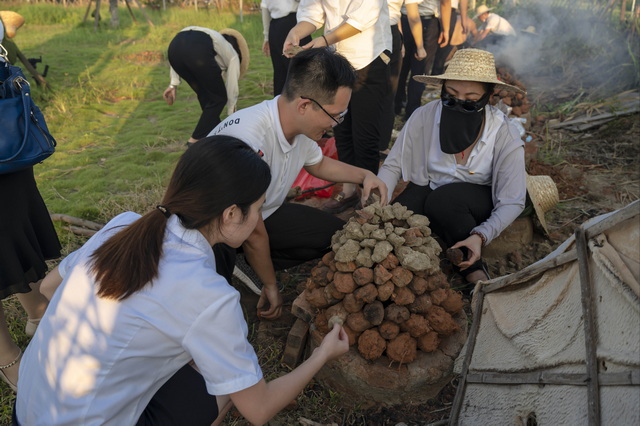 室內(nèi)黨課結(jié)束后,學(xué)員們還走出教室,跟隨大宅村民下到田間地頭,進(jìn)行田間采摘、撿拾柴火、大鍋灶生火做飯等農(nóng)事體驗(yàn),一方面感受鄉(xiāng)村振興帶來的鄉(xiāng)村蛻變,一方面體會農(nóng)事勞作的艱辛與現(xiàn)在美好生活的來之不易。