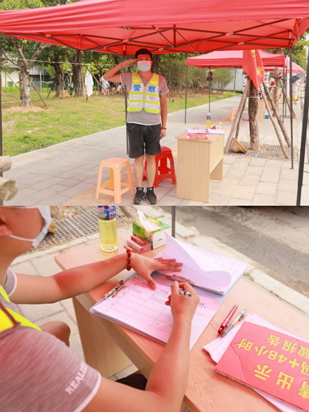 在海滄新陽隔離點(diǎn),象嶼志愿者自9月27日進(jìn)駐以來,就全力做好被隔離人員的生活服務(wù)工作,如分餐、藥物運(yùn)輸、生活垃圾清運(yùn)等。用厚厚的防護(hù)服包裹全身,淋漓的汗水、悶熱感甚至窒息感接踵而來,但他們不叫苦不叫累,每天仍堅(jiān)持工作超過10個小時。在海翔大道東埔村檢查站點(diǎn),象嶼志愿者從9月17日開始的交通協(xié)管任務(wù)也仍在持續(xù)。他們以每天3班、24小時不間斷的堅(jiān)守,確保疫情不擴(kuò)散。