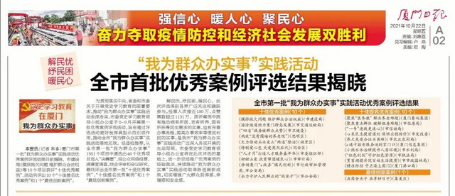 廈門市第一批“我為群眾辦實(shí)事”實(shí)踐活動(dòng)優(yōu)秀案例評(píng)選結(jié)果日前揭曉,象嶼集團(tuán)《聚焦“醫(yī)養(yǎng)教” 解決養(yǎng)老難題》項(xiàng)目從全市1551個(gè)項(xiàng)目中脫穎而出,獲評(píng)“十佳提名優(yōu)秀案例”。