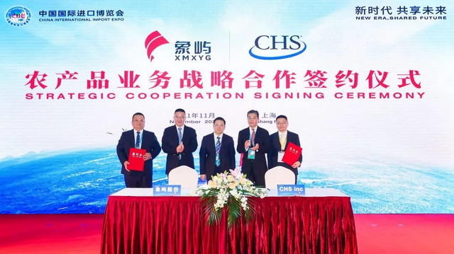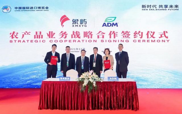 簽約儀式上,國際四大糧商中的兩家——ADM和邦吉現(xiàn)身簽約臺(tái)。象嶼股份分別與兩家重量級企業(yè)以及全球領(lǐng)先的農(nóng)業(yè)綜合企業(yè)美國CHS公司簽署農(nóng)產(chǎn)品業(yè)務(wù)戰(zhàn)略合作協(xié)議。當(dāng)天上午,象嶼股份還與新加坡翱蘭國際簽約開展戰(zhàn)略合作。