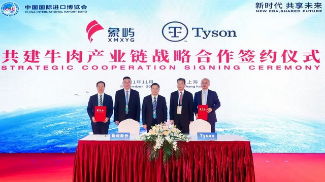 集中簽約儀式上,象嶼股份與美國最大的肉類供應(yīng)商之一泰森食品,就共建牛肉產(chǎn)業(yè)鏈簽署戰(zhàn)略合作協(xié)議。
