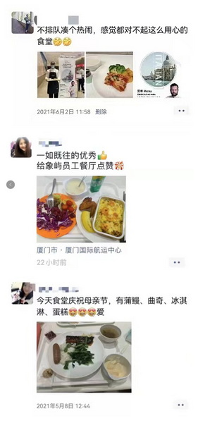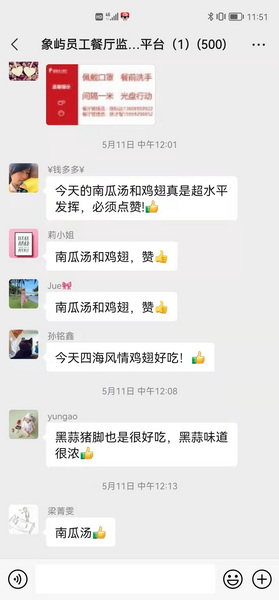 它更美在有家的感覺。每逢節(jié)日,餐廳用精心準(zhǔn)備的美食,送上滿滿的祝福。婦女節(jié)女神披薩、母親節(jié)養(yǎng)生湯、端午肉粽、中秋月餅……舌尖上的幸福,飽含著家的溫暖。餐廳還先后建立4個(gè)交流微信群,參與員工近2000人。象嶼家人們的每一項(xiàng)意見、建議,餐廳都會(huì)迅速答復(fù),并每周公示員工反饋問題的解決進(jìn)展。在交流群里、在朋友圈里,員工的點(diǎn)贊之聲不絕于耳,餐廳平均滿意度保持在90%以上。