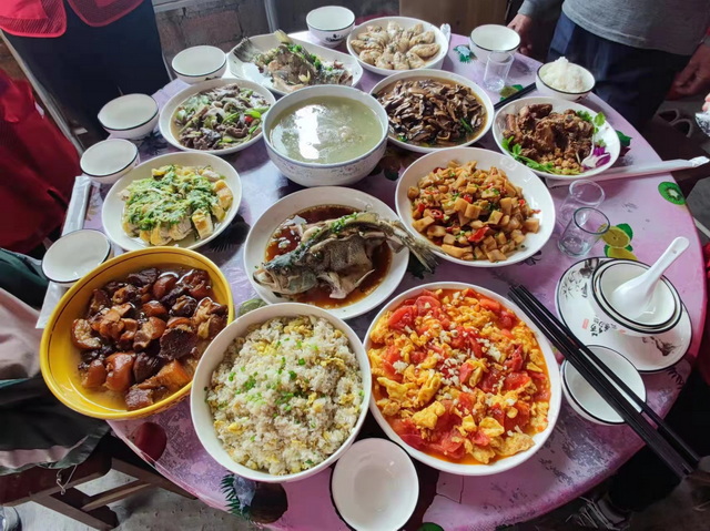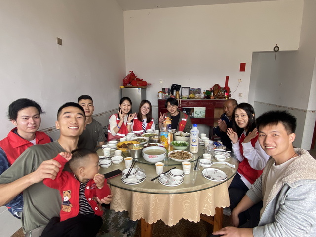最后,五支隊伍分別前往村中五戶空巢老人家中,聊家常、做家務,還精心烹制了滿滿一桌團圓飯。志愿者們與老人們就像家人一樣,其樂融融地圍坐在餐桌前。撲鼻飄香的飯菜、灑滿屋內屋外的歡笑聲與祝福聲,溫暖了每個人的心。