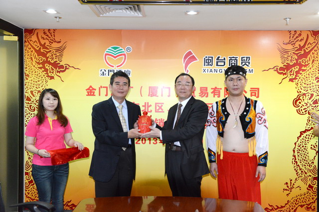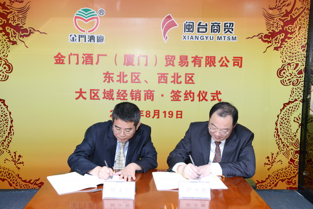 8月19日上午,在廈門立信廣場19樓,金門酒廠(廈門)貿(mào)易有限公司與象嶼集團(tuán)旗下廈門閩臺(tái)商貿(mào)有限公司舉行特許經(jīng)銷簽約儀式,閩臺(tái)商貿(mào)取得金酒在東北區(qū)、西北區(qū)特許獨(dú)家經(jīng)銷權(quán)。意味著在這兩個(gè)區(qū)域的大陸消費(fèi)者只有通過閩臺(tái)商貿(mào)的經(jīng)銷渠道才能買到和喝到真正由臺(tái)灣金門酒廠生產(chǎn)的金門高粱酒正品。