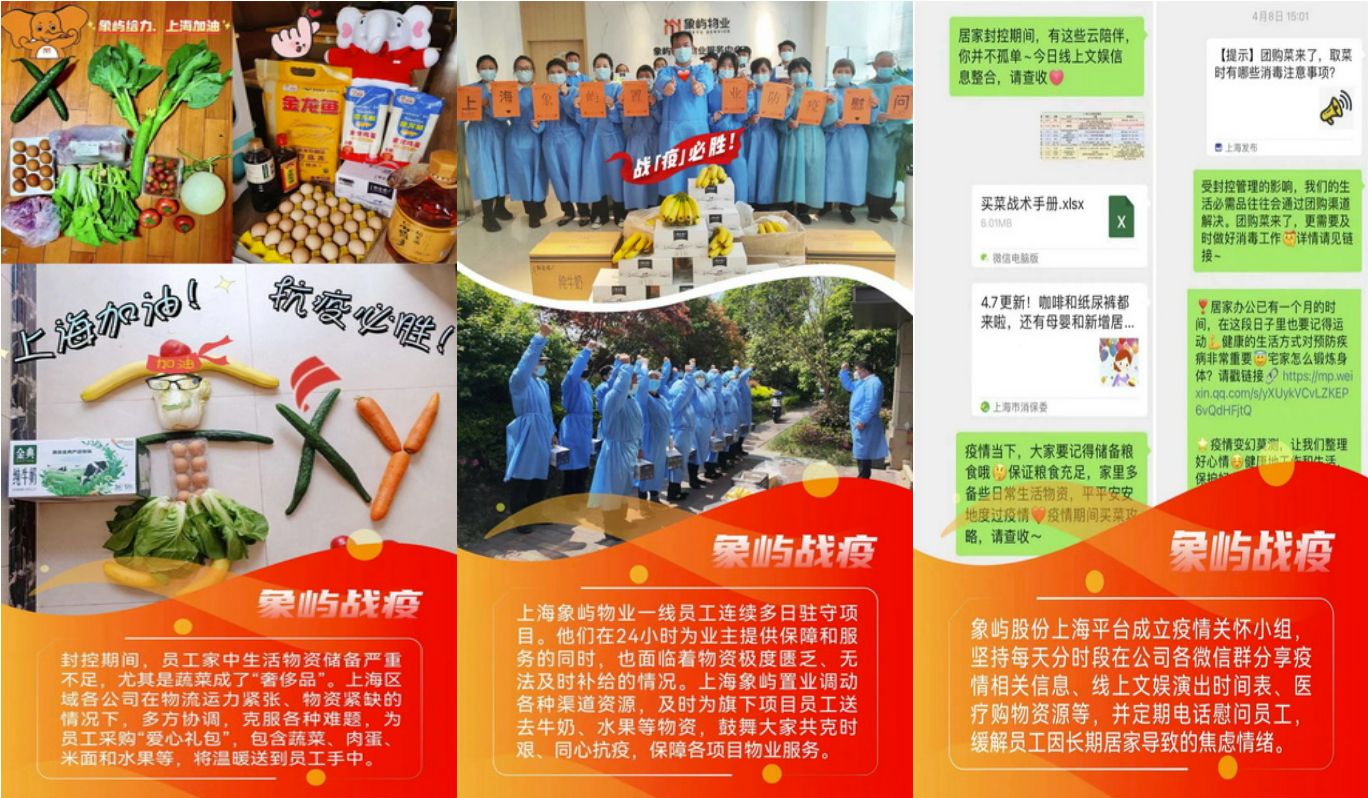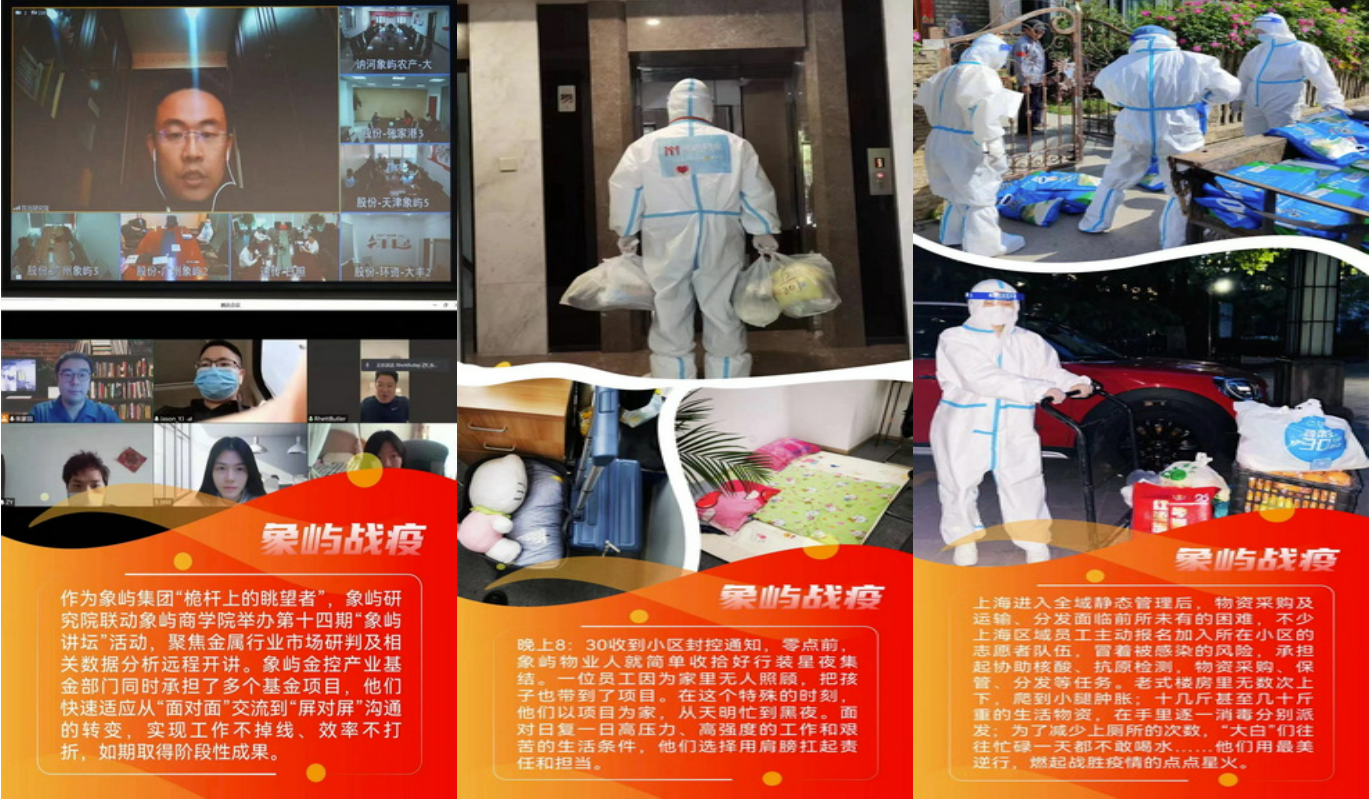 自上海疫情防控攻堅(jiān)戰(zhàn)打響以來(lái),923位象嶼人堅(jiān)守崗位,奮戰(zhàn)在此,他們的安危冷暖牽動(dòng)人心。象嶼集團(tuán)黨委、集團(tuán)公司、集團(tuán)工會(huì)特向在滬員工發(fā)去暖心慰問信,并提供24小時(shí)不間斷的員工心理關(guān)愛熱線,幫助員工疏解情緒壓力。集團(tuán)黨委、集團(tuán)工會(huì)還相繼出臺(tái)多項(xiàng)防疫專項(xiàng)補(bǔ)助政策,并統(tǒng)籌協(xié)調(diào)旗下象嶼股份、象嶼地產(chǎn)、象嶼金象等相關(guān)行業(yè)落實(shí)在滬員工關(guān)愛各項(xiàng)措施,為員工構(gòu)筑堅(jiān)實(shí)后盾。