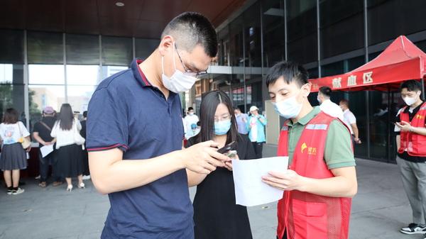 為在疫情常態(tài)化管控背景下保障活動(dòng)順利進(jìn)行,“紅馬甲”也成為昨天現(xiàn)場(chǎng)的另一道風(fēng)景。來(lái)自主辦單位的志愿者們?yōu)楂I(xiàn)血者搭起遮陽(yáng)棚,并引導(dǎo)他們戴好口罩、保持間距、有序排隊(duì)。象嶼集團(tuán)還為獻(xiàn)血者準(zhǔn)備了堅(jiān)果、花生牛奶等營(yíng)養(yǎng)補(bǔ)給以及感恩禮包。