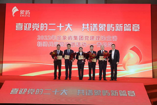 6月30日晚,“喜迎黨的二十大,共譜象嶼新篇章”象嶼集團黨建理論宣講輕騎兵巡回宣講活動在青島舉行。象嶼集團黨委副書記、總裁鄧啟東,黨委副書記、工會主席邵蕰默,副總裁林志勇及200余名周邊區(qū)域公司員工代表現(xiàn)場聆聽,全球各地象嶼員工也以觀看視頻直播的方式“云參與”。
